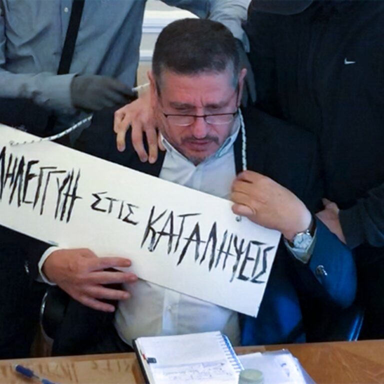 - Μάρτυρας: Καταστροφή ολόκληρου του γραφείου, το μουντζούρωσαν, έσπασαν κομπιούτερ, βιτρίνες, εθιμοτυπικά αντικείμενα. 8.300 ευρώ είχαμε εκτιμήσει το κόστος των ζημιών.