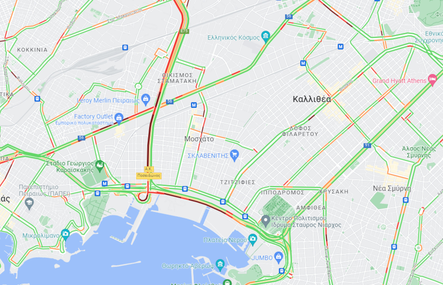Λόγω της καραμπόλας, η κίνηση είναι αυξημένη από το γήπεδο «Γ. Καραϊσκάκης» μέχρι και λίγο πριν το ίδρυμα «Σταύρος Νιάρχος».