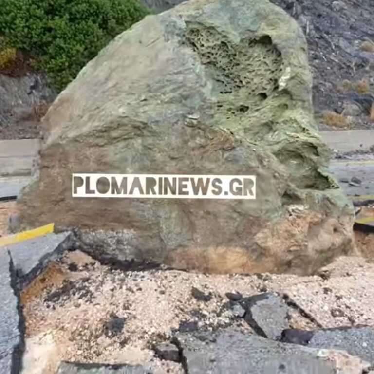 Στο σημείο σπεύδουν συνεργεία της Περιφέρειας Βορείου Αιγαίου, με στόχο την απομάκρυνση του βράχου και την αποκατάσταση των ζημιών.