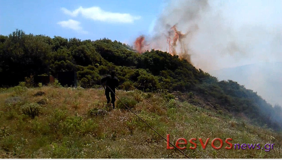Η φωτιά, μέχρι στιγμής δεν απειλεί κατοικημένη περιοχή, αλλά έχει πάρει ανεξέλγκτες διαστάσεις λόγω των ισχυρών ανέμων και γι’ αυτό ζητήθηκε από την ηγεσία του Πυροσβεστικού Σώματος στη Μυτιλήνη η άμεση συνδρομή από αέρος με αεροπλάνα και ελικόπτερα.
