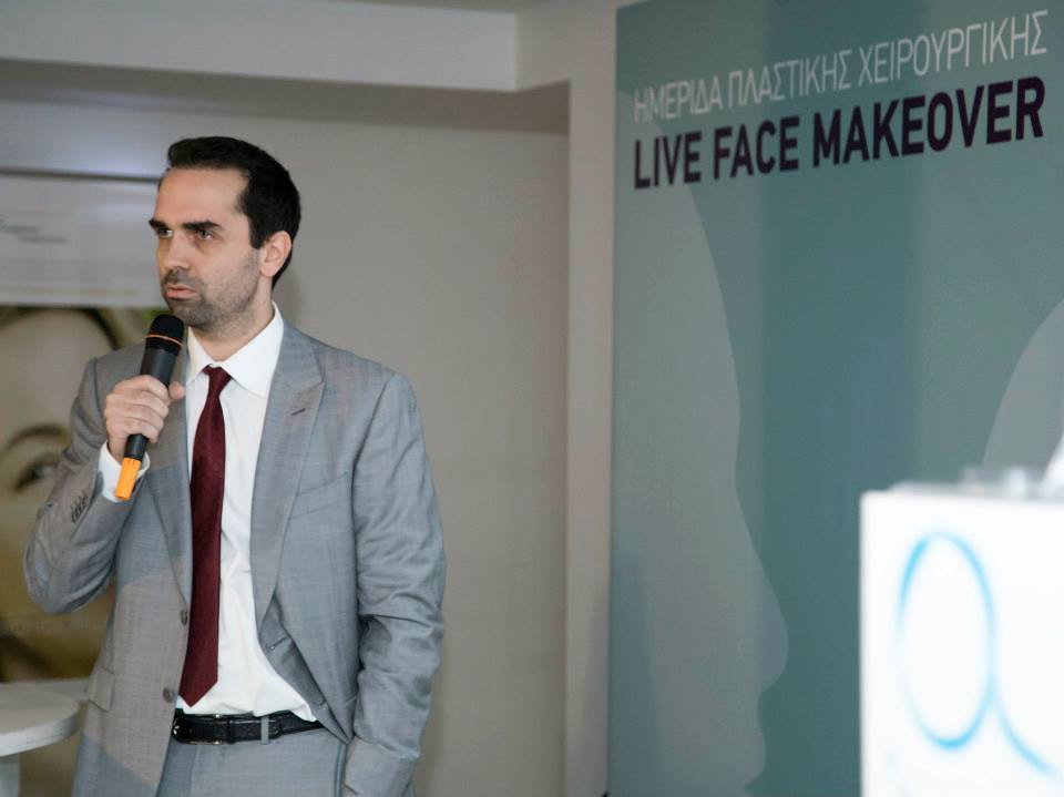 Πιο συγκεκριμένα, στην πρώτη ημερίδα “Live Face Makeover 1” που πραγματοποιήθηκε τον Νοέμβριο του 2014, παρουσιάστηκαν ενδιαφέρουσες ομιλίες από γιατρούς διαφόρων ειδικοτήτων σχετικά με αισθητικές βελτιώσεις στο πρόσωπο και πραγματοποιήθηκε ζωντανά Ρινοπλαστική και Facelift σε μία νέα γυναίκα με πρόβλημα πρόωρης γήρανσης αλλά και με έντονες δυσμορφίες στη μύτη της. Τα αποτελέσματα ήταν εντυπωσιακά, όπως φαίνεται και στις φωτογραφίες, και η ασθενής αντιμετωπίζει πλέον τη ζωή με μεγαλύτερη αυτοπεποίθηση. Το διπλό χειρουργείο Ρινοπλαστικής και Facelift στον ίδιο ασθενή, δεν είχε ξαναπαρουσιαστεί διεθνώς σε συνέδριο και αποτέλεσε μία μεγάλη καινοτομία για την επιστημονική κοινότητα στην Ελλάδα.