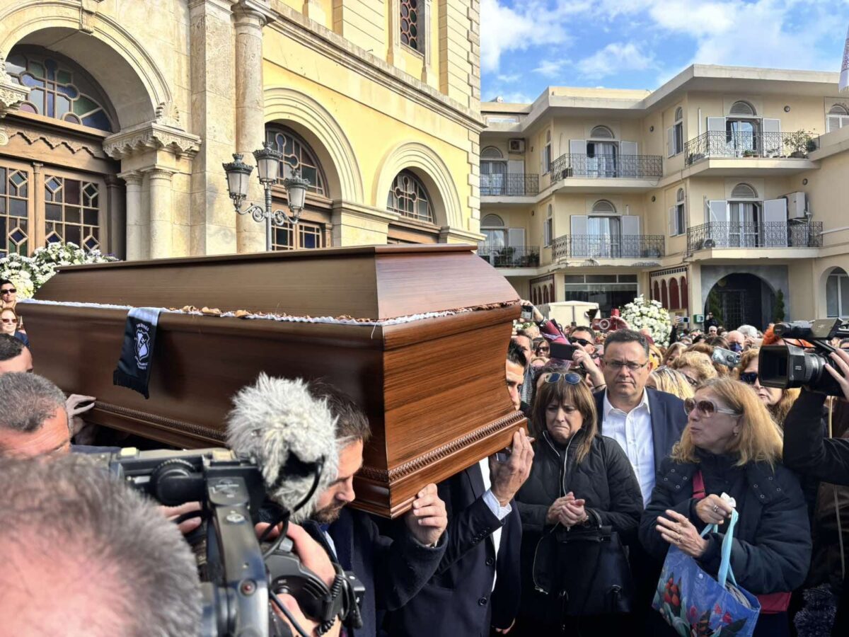 Η νεκρώσιμη ακολουθία για τον Μανώλη Λιδάκη τελέστηκε στον ιερό ναό του Αγίου Μηνά στο Ηράκλειο.