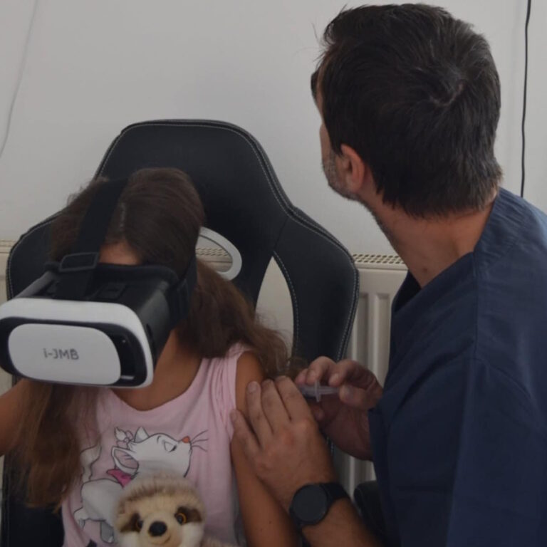 Με τη βοήθεια εικονικής πραγματικότητας, το παιδί φοράει μια μάσκα VR και «μπαίνει» σε έναν κόσμο όπου γίνεται ήρωας που πρέπει να σώσει τον κόσμο. Τη στιγμή που ο «μάγος» της ιστορίας του ακουμπά το χέρι, ο γιατρός πραγματοποιεί την ένεση, χωρίς το παιδί να το καταλάβει.