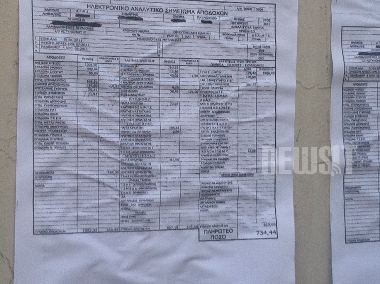 Μάλιστα, τοιχοκόλλησαν στο υπουργείο αντίγραφα της μισθοδοσίας τους που δείχνουν ότι παίρνουν 730 ευρώ το μήνα!