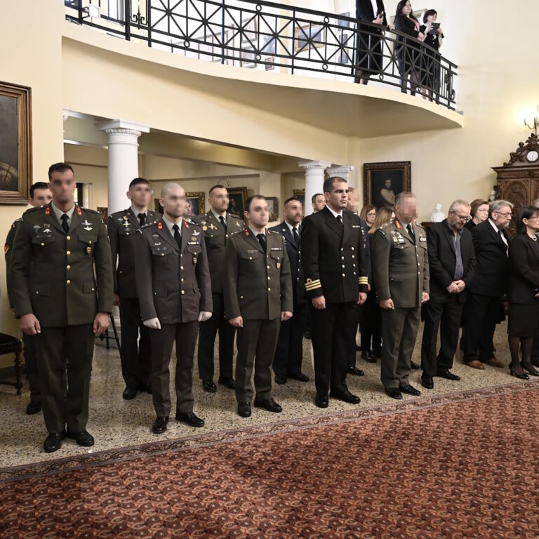 Την απονομή έκανε ο Νίκος Δένδιας παρουσία της στρατιωτικής ηγεσίας των Ενόπλων Δυνάμεων και συγγενών των στελεχών