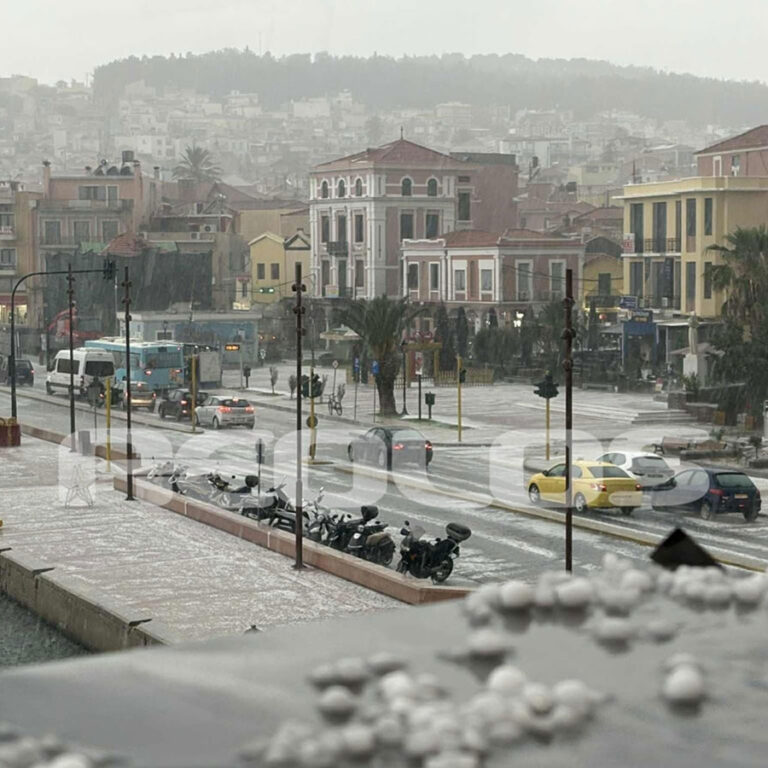 Μυτιλήνη: Πλημμύρες και χαλάζι από την κακοκαιρία Adel – Πνίγηκε η πόλη σε λίγα λεπτά