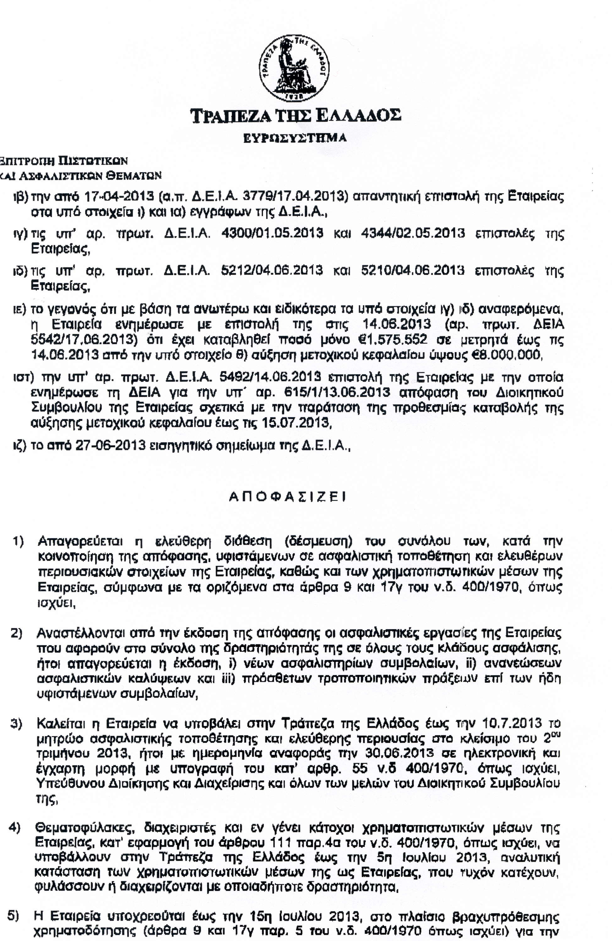 Δείτε ολόκληρη την απόφαση της Τράπεζας της Ελλάδος που δημοσιεύει το nextdeal.gr