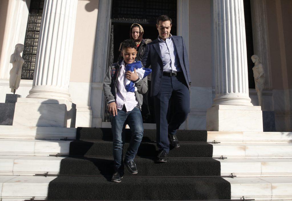 “Κάποιοι στέρησαν από τον Αμίρ την τιμή να κρατήσει την σημαία μας. Σήμερα του την έδωσα για να θυμάται και να τιμά τις αρχές & τις αξίες μας”, έγραψε ο Πρωθυπουργός στο Twitter, μετά την συνάντησή του με τον 11χρονο.