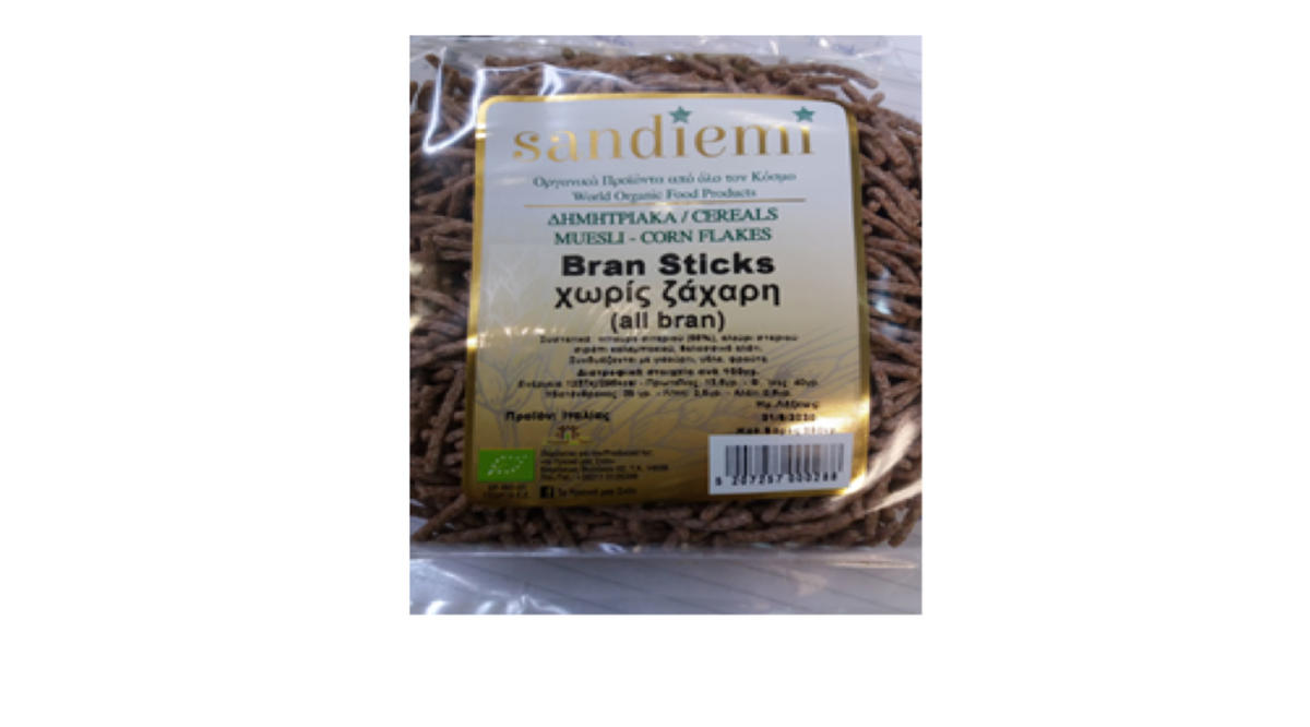 Ο ΕΦΕΤ και ειδικότερα η Περιφερειακή Διεύθυνση Αττικής, στο πλαίσιο της διενέργειας τακτικών ελέγχων, διαπίστωσε ότι στην επισήμανση του προϊόντος “sandiemi – Bran sticks χωρίς ζάχαρη (all bran)“, δεν αναγράφεται ότι το προϊόν περιέχει γλουτένη και μπορεί να περιέχει σόγια, γάλα και ίχνη ξηρών καρπών.