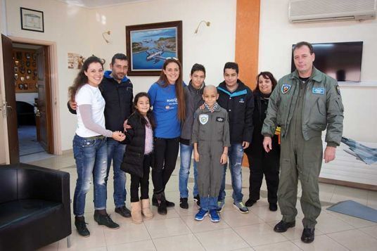 Τον 10χρονο Γιώργο, συνοδευόμενο από την οικογένειά του και εθελοντές  του Οργανισμού, υποδέχτηκε ο Διοικητής της Μονάδας, Σμήναρχος (Ι) Αθανάσιος Γκανάς.