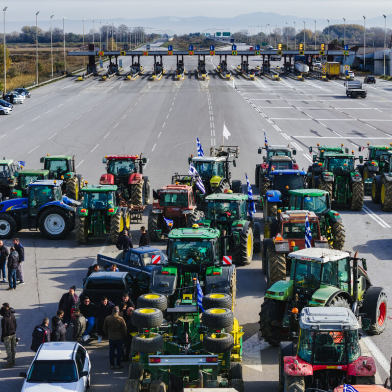 Μπλόκο αγροτών και κτηνοτρόφων από τη Λάρισα, την Ελασσόνα, τον Τύρναβο, την Αγιά και τα Φάρσαλα και την Μαγνησία με τρακτέρ και αγροτικά μηχανήματα στον κόμβο της Εθνικής Οδού στη Νίκαια Λάρισας / ΕUROKINISSI