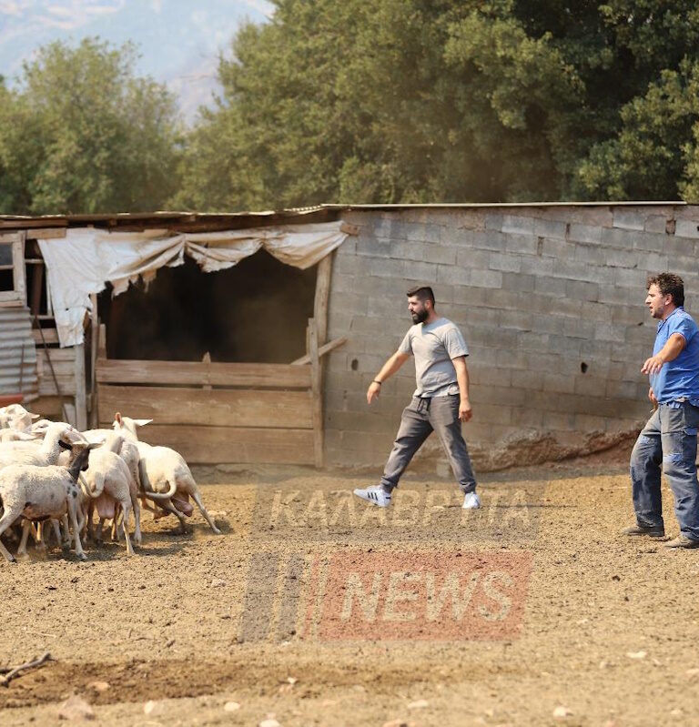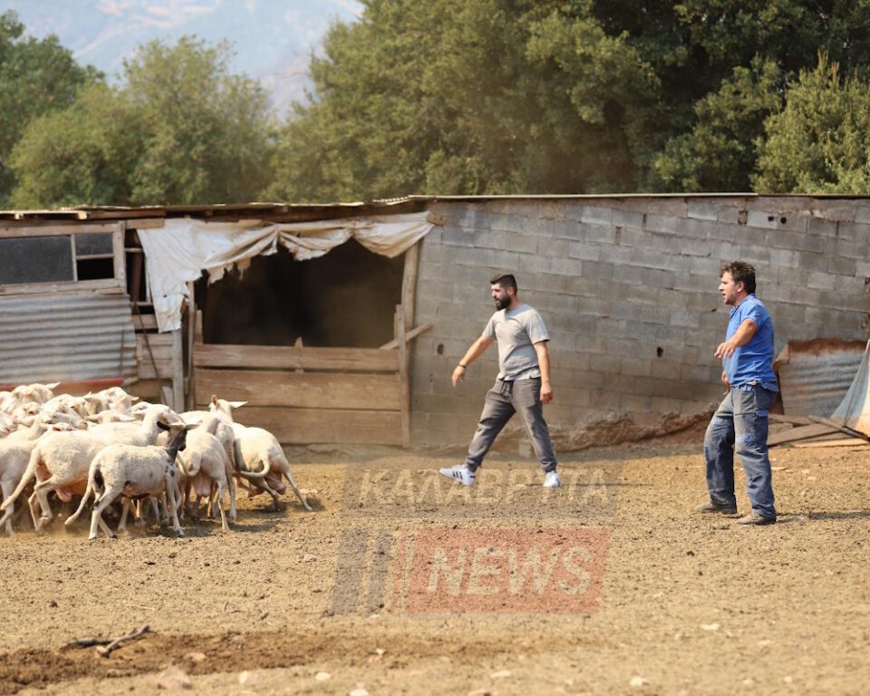 Οι φλόγες από τη μεγάλη φωτιά στα Καλάβρυτα πλησίαζαν απειλητικά και οι καπνοί είχαν μαυρίσει τον ουρανό, μία μέρα μετά της Παναγίας (16/8/25). Τα ζώα ήταν φοβισμένα και ανήσυχα μα πιο ανήσυχοι ήταν οι κτηνοτρόφοι που έψαχναν να βρουν τρόπο να τα σώσουν από τη μανία της φωτιάς…