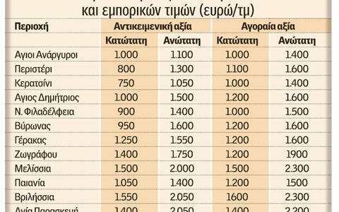 Οι αντικειμενικές αξίες παραμένουν σήμερα στα παράλογα ύψη του 2007, όταν η αγορά των ακινήτων γνώριζε «ημέρες δόξας». Την περίοδο 1993 – 2007 υπήρξε έντονη αύξηση των τιμών των ακινήτων.