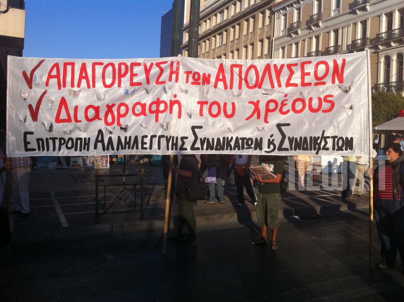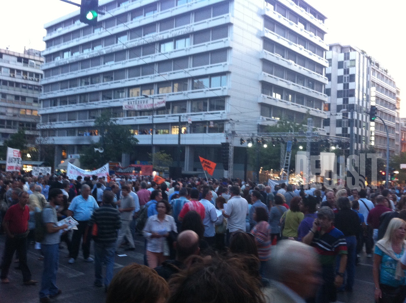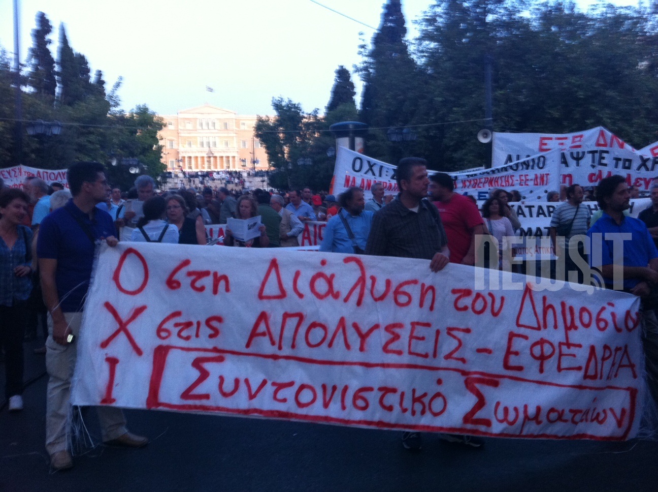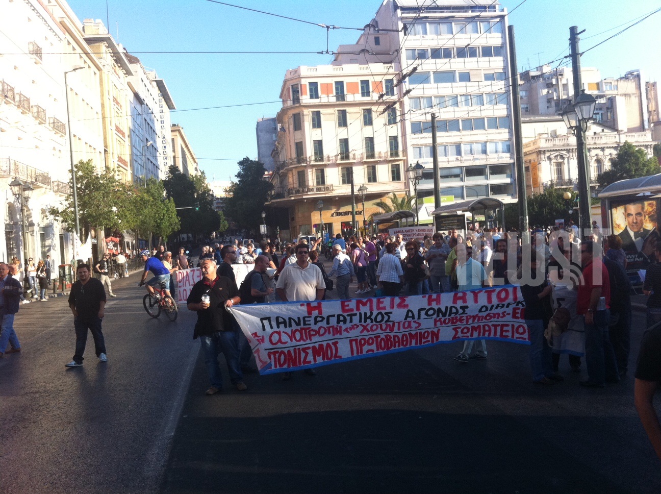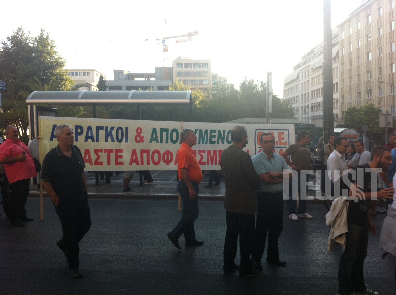 Μαζί τους και οι εργαζόμενοι της ΑΔΕΔΥ και μία μικρή ομάδα Αγανακτισμένων πολιτών.