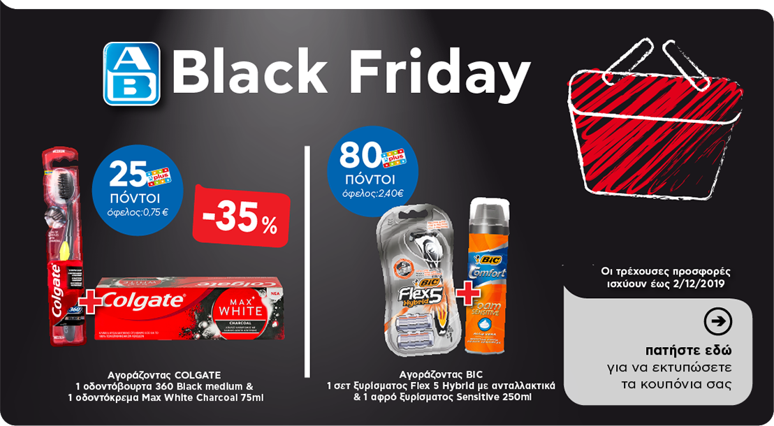 Με αυτόν τον τρόπο, η ΑΒ γιορτάζει για μια ακόμη χρονιά τοBlack Friday” με συμφέρουσες προσφορές και πολλαπλά οφέλη για όλους μέσα από προωθητικές ενέργειες στο Click2Shop, τα AB Touchpoint και το δίκτυο καταστημάτων ΑΒ.