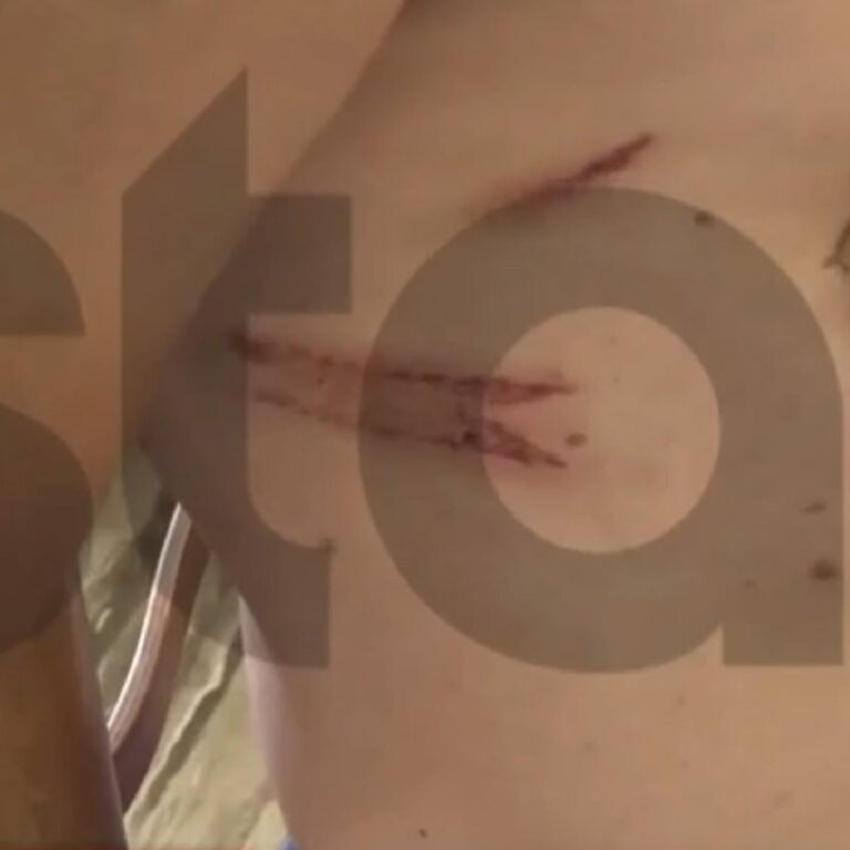 «Τα σημάδια εδώ στα πλευρά είναι από το σφυρί που δεχόμουνα από τον έναν χτυπήματα εκ δεξιών. Στο κεφάλι επάνω είναι το πρώτο χτύπημα, το οποίο μου ήρθε από αριστερά από τραπεζάκι ξύλινο που με περίμεναν μόλις μπήκα μέσα. Τα χέρια, τα πόδια εδώ όλα είναι που αμυνόμουν από την λύσσα που είχε πάνω μου», λέει το θύμα.