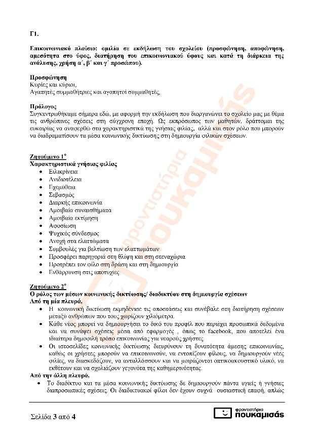 Δείτε τις προτεινόμενες απαντήσεις από τα φροντιστήρια Πουκαμισάς (τελικές απαντήσεις):