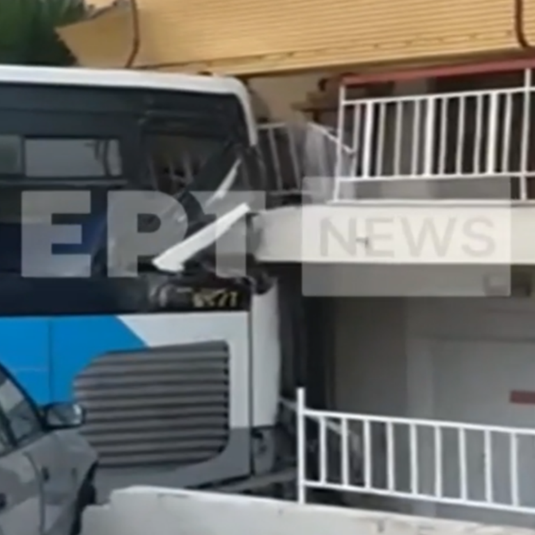 Παπάγου: Βίντεο από την προσπάθεια απομάκρυνσης του λεωφορείου που έπεσε σε πολυκατοικία