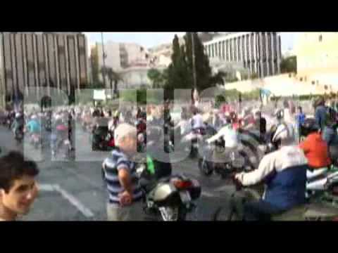 Στο πλευρό των Αγανακτισμένων βρέθηκε χθες και μία μηχανοκίνητη πορεία που πέρασαν από την πλατεία Συντάγματος, σταμάτησαν και διαμαρτυρήθηκαν μαρσάροντας και πατώντας την κόρνα τους.