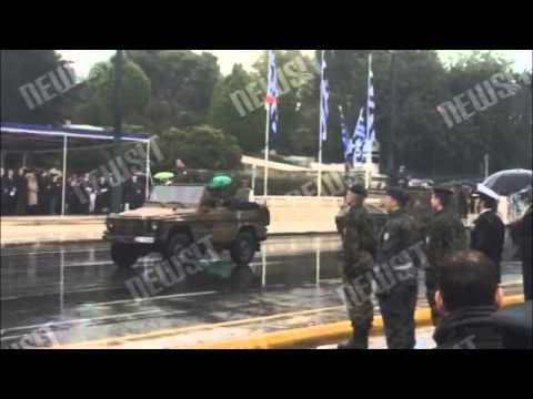 Αν και η συμμετοχή του κόσμου δεν είναι η αναμενόμενη λόγω της βροχής και του κρύου η παρέλαση ξεκίνησε κανονικά. Τα στρατιωτικά τμήματα το ένα μετά το άλλο θα παρελάσουν στο Σύνταγμα ενώπιον του Προέδρου της Δημοκρατίας