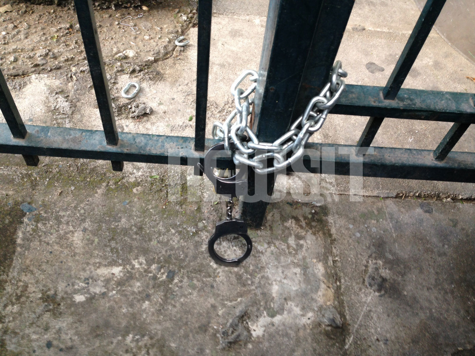 Κι όμως, η φράση είναι πέρα για πέρα κυριολεκτική. Γιατί κάποιοι, πέρασαν... χειροπέδες σε μια πλαϊνή πόρτα του Ραδιομεγάρου της ΕΡΤ. Ίσως για να μη φύγει, ποιος ξέρει;