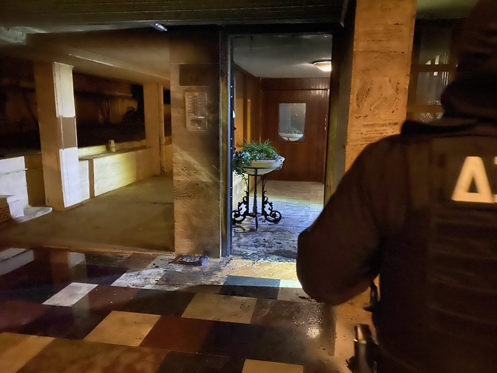 Στη συνέχεια, οι δράστες άναψαν μια φωτοβολίδα, την πέταξαν στην εξώπορτα του κτηρίου, η οποία πήρε φωτιά, και εξαφανίστηκαν με μηχανή που δεν είχε πινακίδες.