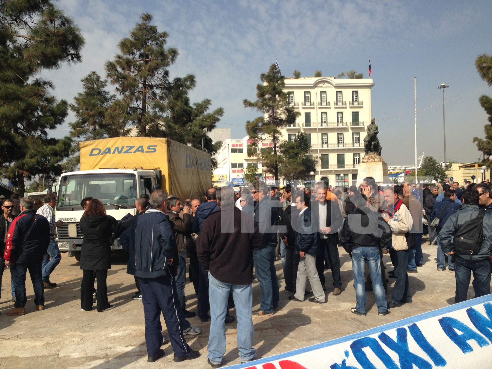 Οι ναυτεργάτες μπήκαν στο χώρο του λιμανιού, ωστόσο εκεί συνάντησαν “φραγμό” από δυνάμεις των ΜΑΤ και του Λιμενικού που ουσιαστικά τους απέκλεισαν εντός του λιμανιού και σε απόσταση ενός χιλιομέτρου από το υπουργείο.