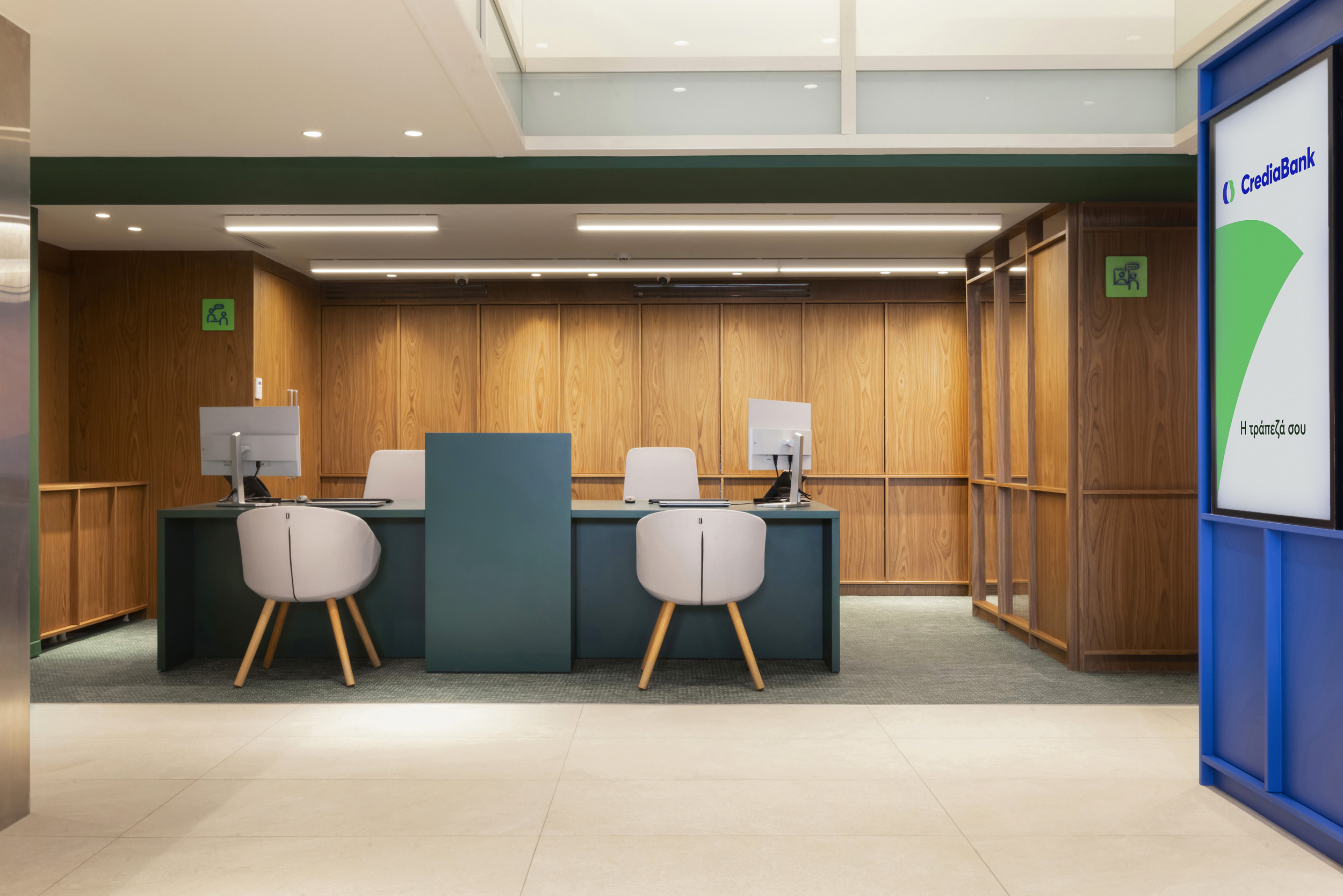 Από τα πρώτα και πιο σημαντικά στοιχεία στο concept της CrediaBank είναι το γεγονός ότι προκειμένου να επισκεφθώ το κατάστημα δεν χρειάστηκε να κλείσω ραντεβού. Αντίθετα, οι πόρτες είναι πάντα ανοιχτές και οι τραπεζικοί σύμβουλοι πάντα διαθέσιμοι και πρόθυμοι να μας καλωσορίσουν με ένα καθησυχαστικό χαμόγελο. Επιπλέον, τα ταμεία λειτουργούν καθ’ όλη τη διάρκεια της ημέρας, προσφέροντας άμεση εξυπηρέτηση, ενώ οι νέοι χώροι έχουν σχεδιαστεί ώστε να φέρνουν τον πελάτη και τον τραπεζικό σύμβουλο στο ίδιο οπτικό επίπεδο, δίνοντάς μας τη δυνατότητα για μία καλύτερη, πιο ουσιαστική επικοινωνία. Επιπλέον, η τεχνολογία είναι πάντα εκεί για να απλοποιεί τις συναλλαγές μας και να μας βοηθήσει αποτελεσματικά αλλά όχι για να αντικαταστήσει την ανθρώπινη παρουσία, η οποία άλλωστε είναι πάντα ο κοινός παρονομαστής σε κάθε εργασία που πραγματοποιείται στο κατάστημα της CrediaBank.