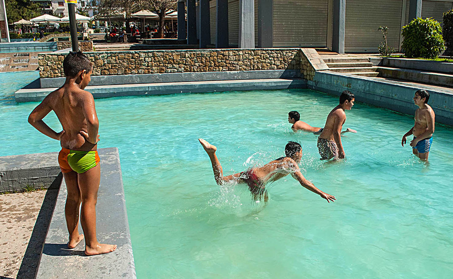 Οι πιτσιρίκοι της φωτογραφίας ίσως να μην το είπαν στην μαμά τους αλλά τους έπιασε για τα καλά η ζέστη και αποφάσισαν να κάνουν βουτιές όπου βρουν.