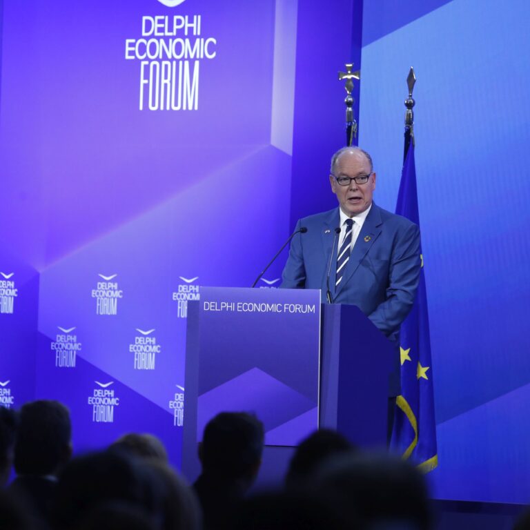 Ο πρίγκιπας Αλβέρτος – που με καρφίτσες στο πέτο τη σημαία του Μονακό και της Ελλάδας μαζί, μίλησε στο Φόρουμ των Δελφών – επισκέφθηκε τον αρχαιολογικό χώρο και το μουσείο των Δελφών, έναν από τους σημαντικότερους τόπους της αρχαίας ελληνικής κληρονομιάς, ενώ στη συνέχεια έδωσε το «παρών» στο Οικονομικό Φόρουμ των Δελφών, όπου και απηύθυνε ομιλία.