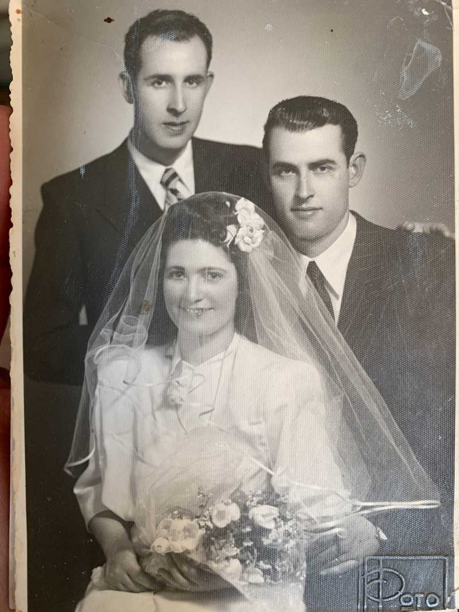 Από τον γάμο του Ιντό με τη Ρασέλ, στις 14 Απριλίου του 1946 -Αριστερά όρθιος ο αδελφός του, Μωύς Μπουρλά