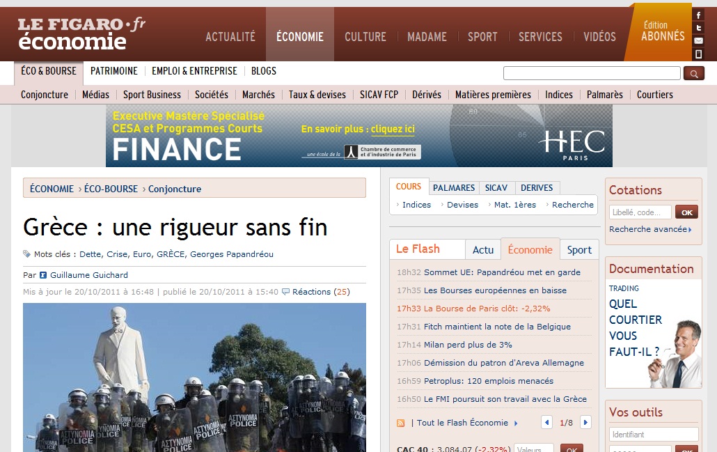 Για τουλάχιστον 16 τραυματίες και ένας νεκρός στα επεισόδια της Αθήνα κάνει λόγο η γαλλική Le Figaro.