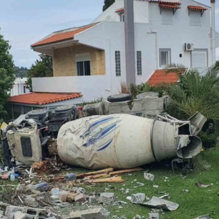 Σε αυλή σπιτιού στην Ρόδο, «εισέβαλε» και αναποδογύρισε εν τέλει, μπετονιέρα γεμάτη σκυρόδερμα. Το τροχαίο έγινε το μεσημέρι της Πέμπτης (23.04.2026) στην περιοχή Τρεις και ευτυχώς προκλήθηκαν μόνο υλικές ζημιές.