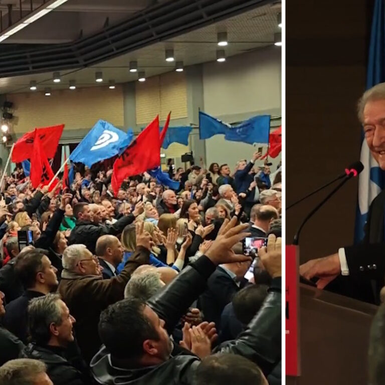Η συγκέντρωση του Σαλί Μπαρίσα έγινε με «φόντο» τις εκλογές στην Αλβανία, μέσα στην κατάμεστη αίθουσα «Μελίνα Μερκούρη» του Σταδίου Ειρήνης και Φιλίας και μεταξύ άλλων, το «παρών» έδωσε και ο Φρέντι Μπελέρης.