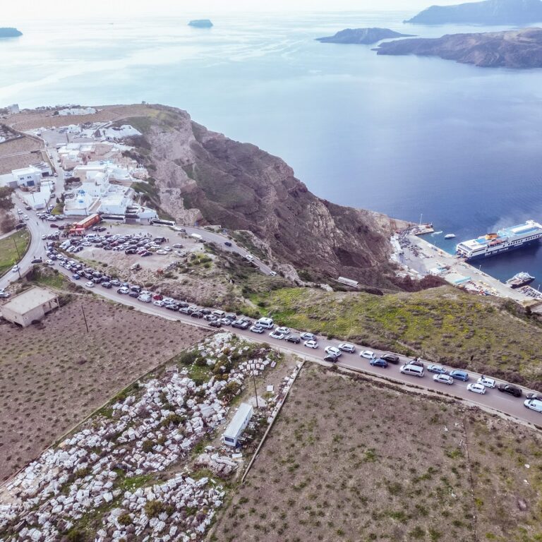 Οι πολίτες φεύγουν από την Σαντορίνη με όποιον τρόπο βρουν και χαρακτηριστικές είναι οι εικόνες από το μποτιλιάρισμα στους δρόμους που οδηγούν στο λιμάνι του νησιού αλλά και στο αεροδρόμιο όπου όλες οι πτήσεις φεύγουν γεμάτες.