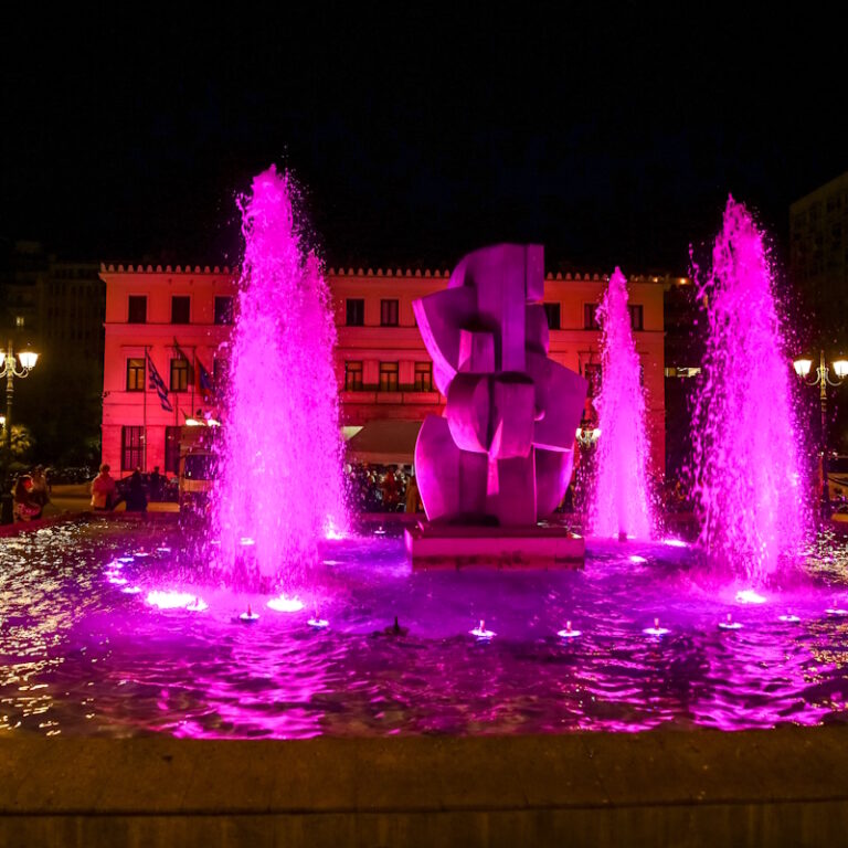 Ο φωτισμός έγινε ως μία συμβολική κίνηση, στέλνοντας μήνυμα ζωής και αισιοδοξίας κατά του καρκίνου του μαστού, όπως κάθε χρόνο στις 24 Οκτωβρίου.