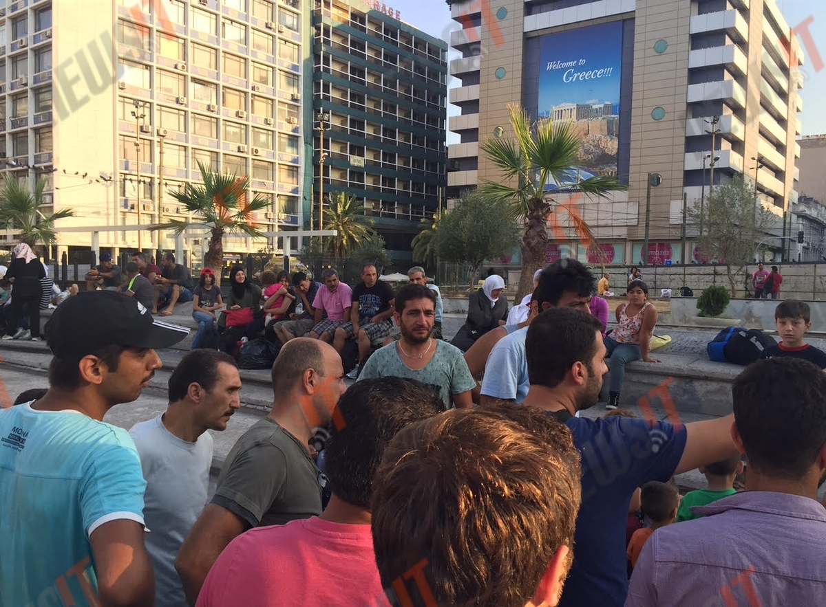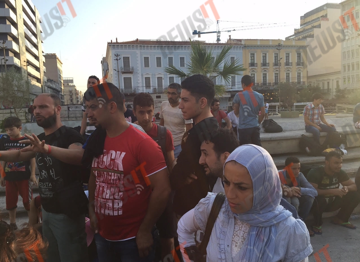 Τριακόσιοι μετανάστες, στην πλειοψηφία τους Σύροι πρόσφυγες πολέμου, βρίσκονται αυτή την ώρα στην πλατεία Ομόνοιας. Ανάμεσά τους βρίσκονται και πολλά γυναικόπαιδα.