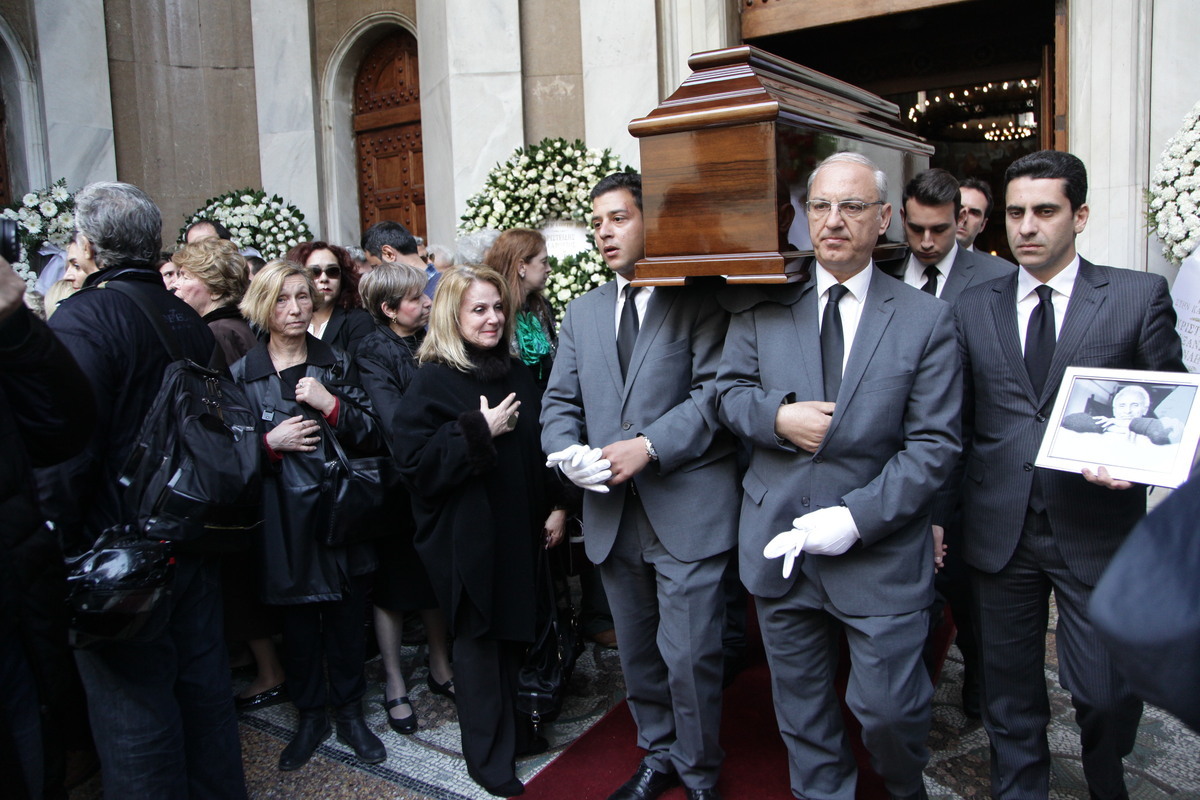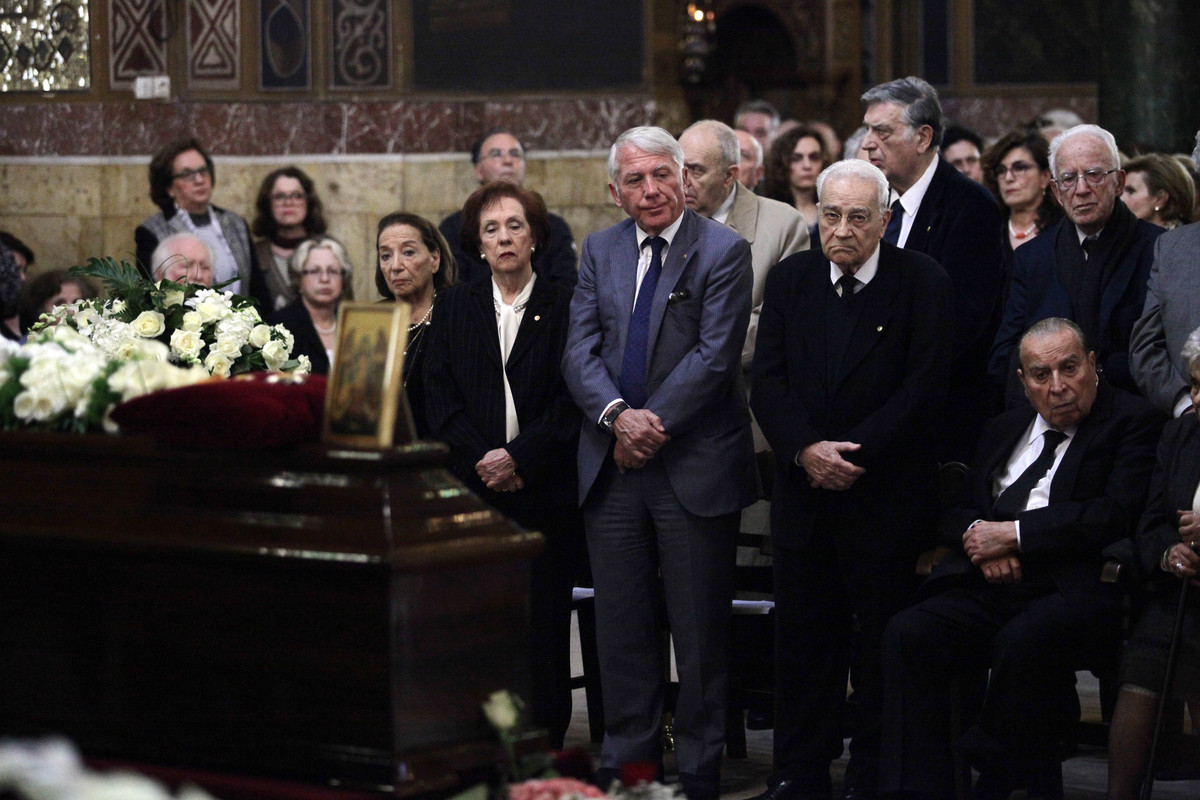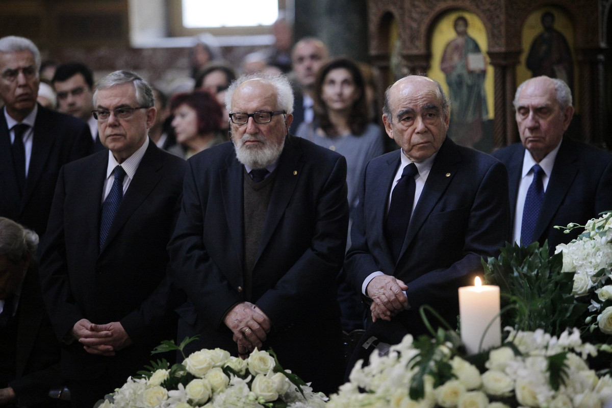Η εξόδιος ακολουθία τελέστηκε χοροστατούντος του Μητροπολίτη Ύδρας- Σπετσών- Αιγίνης- Ερμιονίδος- Τροιζηνίας, Εφραίμ. Παραβρέθηκαν ο πρόεδρος της Βουλής Νίκος Βούτσης, ο υπουργός Πολιτισμού και Αθλητισμού Αριστείδης Μπαλτάς, οι πρώην πρωθυπουργοί Αντώνης Σαμαράς και Λουκάς Παπαδήμος, η πρώην πρόεδρος της Βουλής Άννα Ψαρούδα Μπενάκη, ο πρόεδρος της Ακαδημίας Αθηνών Θανάσης Βαλτινός, ο Βασίλης Θεοχαράκης, η Λίνα Μενδώνη, ο Θανάσης Νιάρχος, ο Θεόδωρος Φορτσάκης, ο Νίκος Σηφουνάκης, η Άννα Διαμαντοπούλου, ο ζωγράφος Σωτήρης Σόρογκας, ο ποιητής Χριστόφορος Λιοντάκης, ακαδημαϊκοί και πολλοί εικαστικοί.