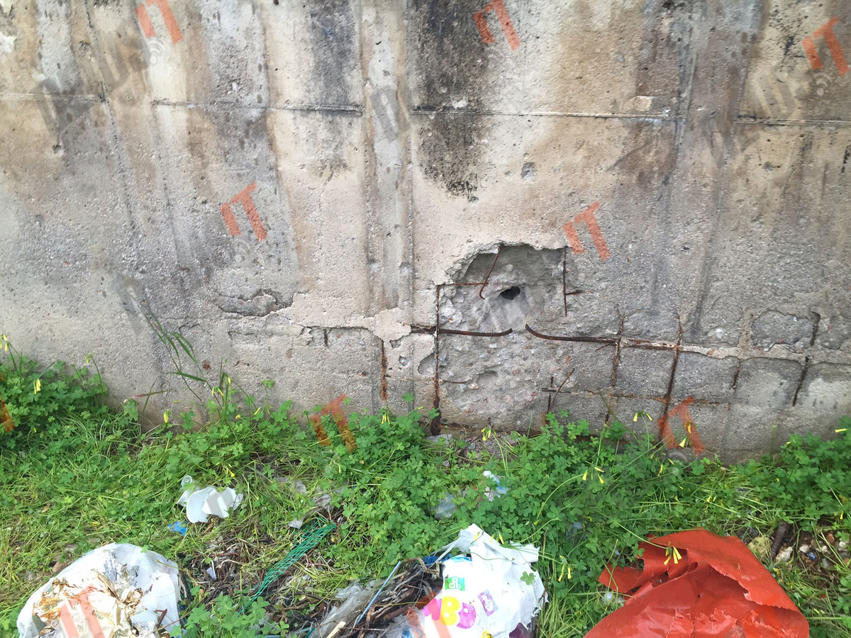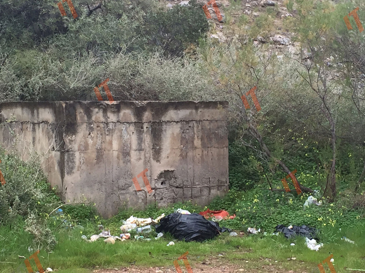 Σε ένα από τα χαλάσματα υδραγωγείου που βρίσκονται μέσα στο κτήμα μπορεί κανείς να διακρίνει μια τρύπα στο τσιμέντο, η οποία θα μπορούσε να έχει γίνει από δοκιμές εκρηκτικών.