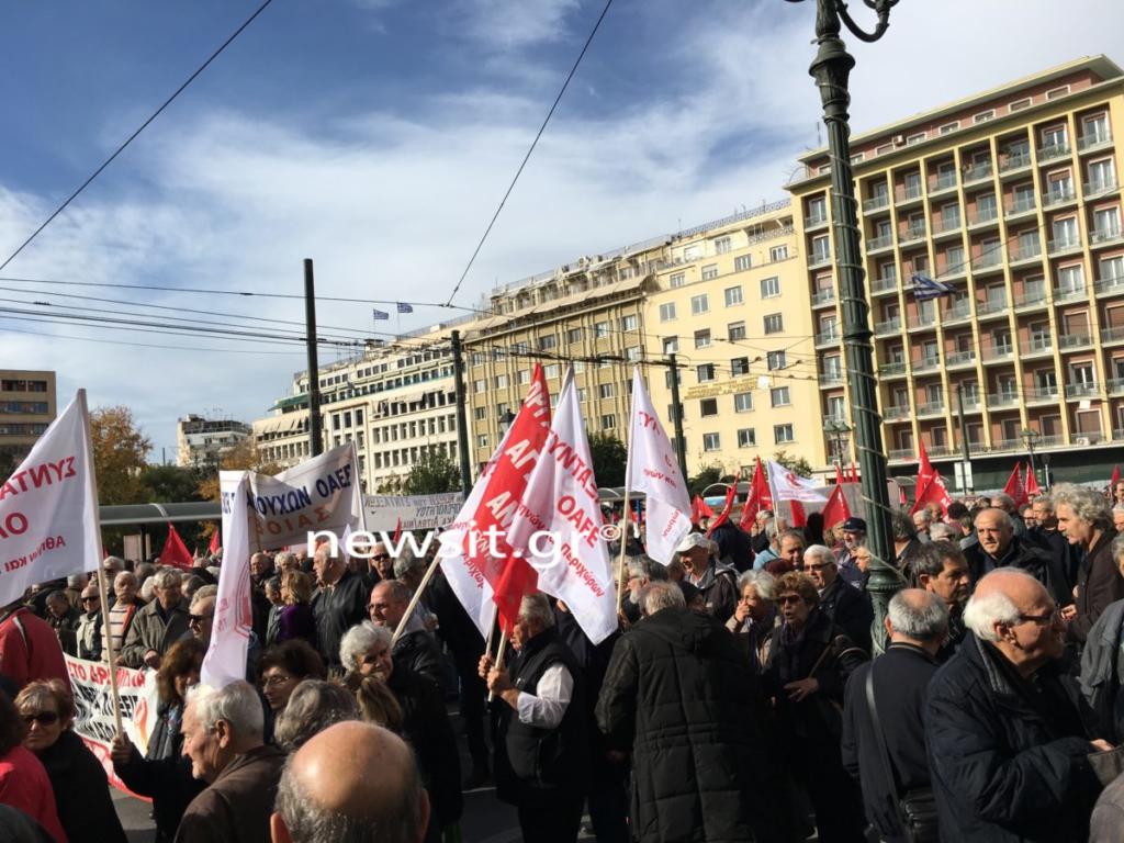 Συγκέντρωση διαμαρτυρίας στην πλατεία Κλαυθμώνος και στο Σύνταγμα πραγματοποίησαν οι συνταξιούχοι όλης της χώρας. Όπως αναφέρουν οι ίδιοι, τάσσονται ενάντια «στον νέο σφαγιασμό που η Κυβέρνηση ΣΥΡΙΖΑ-ΑΝΕΛ ετοιμάζει για τις πενιχρές συντάξιμες αποδοχές μας με τον νόμο “Κατρούγκαλου”».