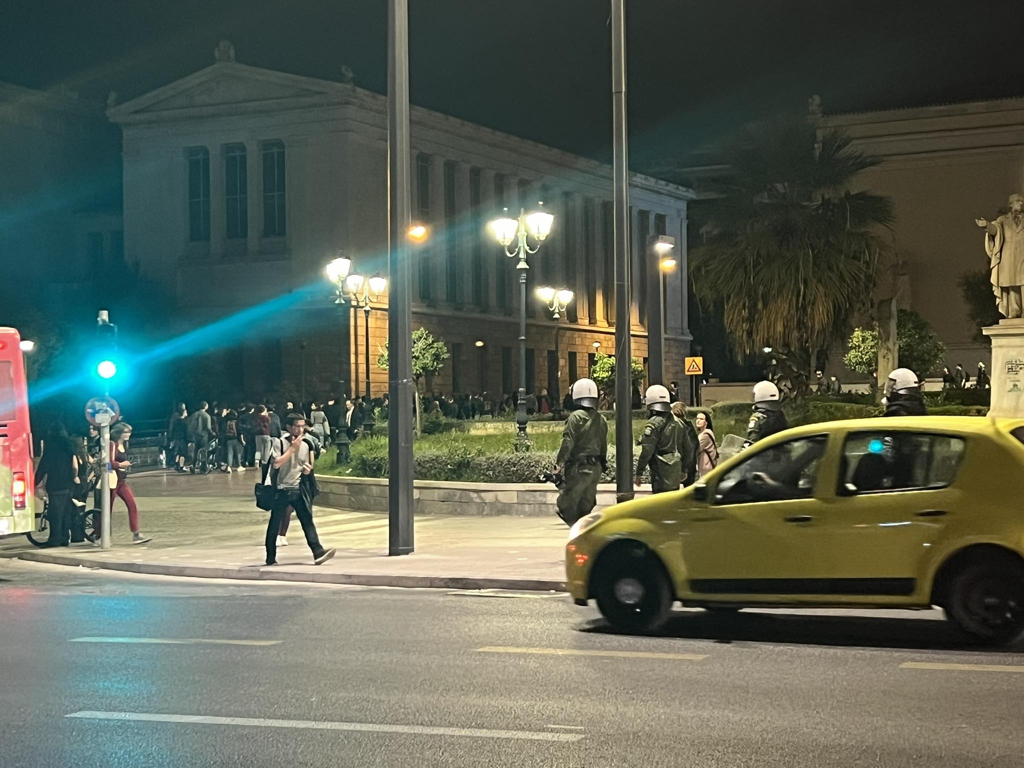 Οι διαμαρτυρόμενοι για τον τραυματισμό της 16χρονης στο Νέο Ηράκλειο συγκεντρώθηκαν στα Προπύλαια και κινήθηκαν προς τις οδούς Ακαδημίας και Σόλωνος. Οι δρόμοι στα Εξάρχεια είναι κλειστοί.