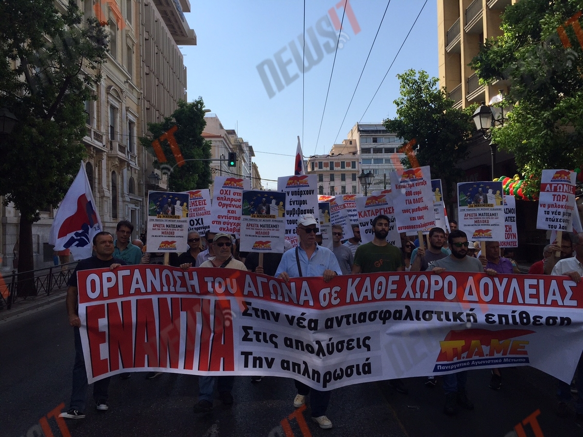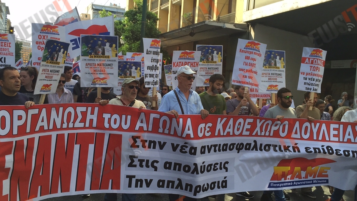 Την ίδια ώρα, προσθέτει το ΠΑΜΕ οι εργαζόμενοι βιώνουν μια ανηλεή επίθεση. Ειδικά τους τελευταίους μήνες, οι χώροι δουλειάς έχουν μετατραπεί κυριολεκτικά σε κάτεργα με καθημερινές απολύσεις και μειώσεις μισθών.