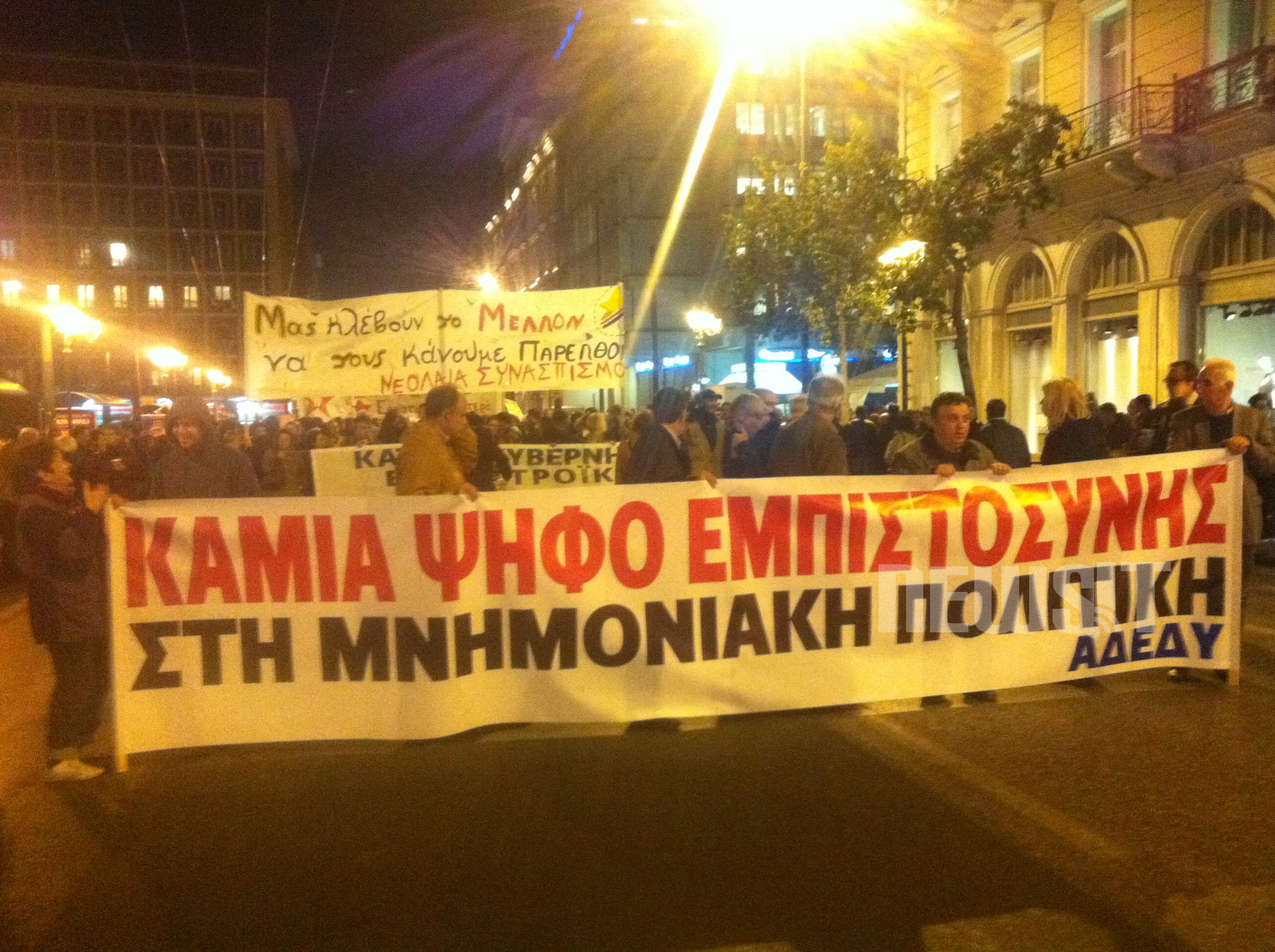 Συλλαλητήριο στην Πλατεία Κλαυθμώνος διοργανώνει, η ΑΔΕΔΥ, αντιδρώντας στην κυβερνητική πολιτική. Την ίδια ώρα, στο Σύνταγμα, συλλαλητήρια ετοιμάζουν Πρωτοβάθμια Σωματεία και ο ΣΥΡΙΖΑ.