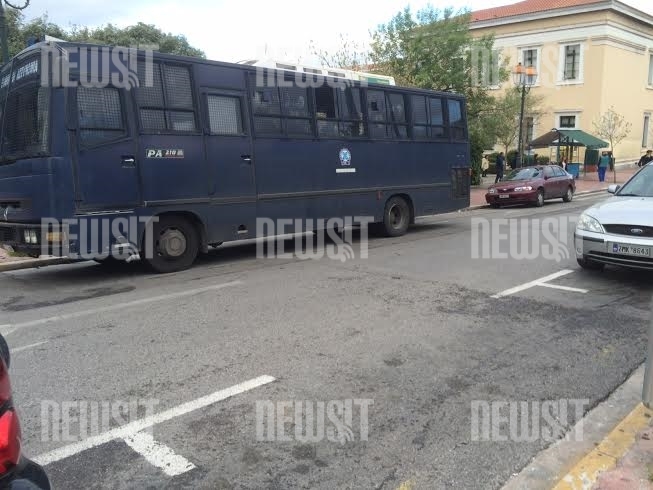 Διακριτική είναι προς το παρόν η παρουσία της αστυνομίας στα περίχωρα του πανεπιστημίου, με δυο κλούβες της ΕΛ.ΑΣ. να βρίσκονται στην Ακαδημίας.