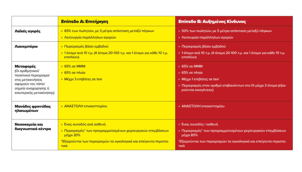 Τα μέτρα που ισχύουν σε κάθε επίπεδο
