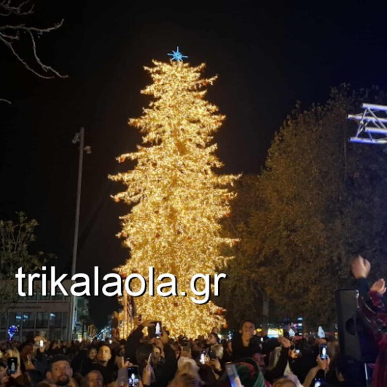 Πρόκειται για το μεγαλύτερο φυσικό χριστουγεννιάτικο δέντρο της Ελλάδα, που φωτίστηκε στα πλαίσια της γιορτής την οποία συνόδευσαν πολύχρωμα πυροτεχνήματα και χαρούμενη διάθεση, γεμίζοντας με φως τα Τρίκαλα.