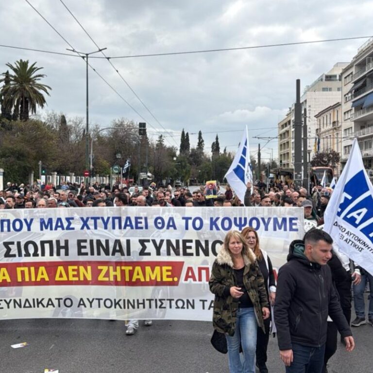 Κορυφώνονται σήμερα Δευτέρα (23.03.2026) οι διαμαρτυρίες των οδηγών ταξί με τη νέα 24ωρη απεργία καθώς ψηφίζεται το νέο νομοσχέδιο του υπουργείου Υποδομών και Μεταφορών για την ηλεκτροκίνηση και τη μεταφορά μέσω ΙΧ. Επαγγελματίες οδηγοί απ’ όλη την Ελλάδα συγκεντρώθηκαν από νωρίς στα γραφεία του ΣΑΤΑ, κάνοντας ταξίδι από πόλεις όπως η Καλαμάτα, η Σπάρτη, η Πάτρα, η Θεσσαλονίκη, η Λάρισα και το Ηράκλειο Κρήτης.