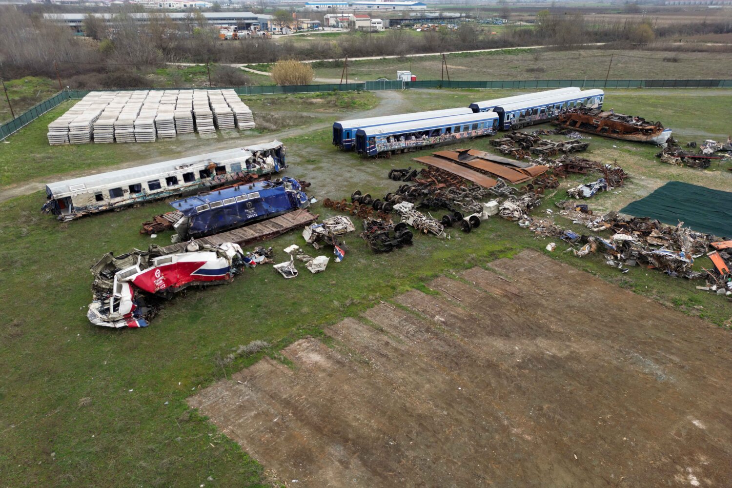 Τα «κουφάρια» των βαγονιών των δύο μοιραίων αμαξοστοιχιών, φυλάσσονται σε ειδικό χώρο στο Κουλούρι στη Λάρισα και οι αεροφωτογραφίες του larissanet είναι ενδεικτικές…