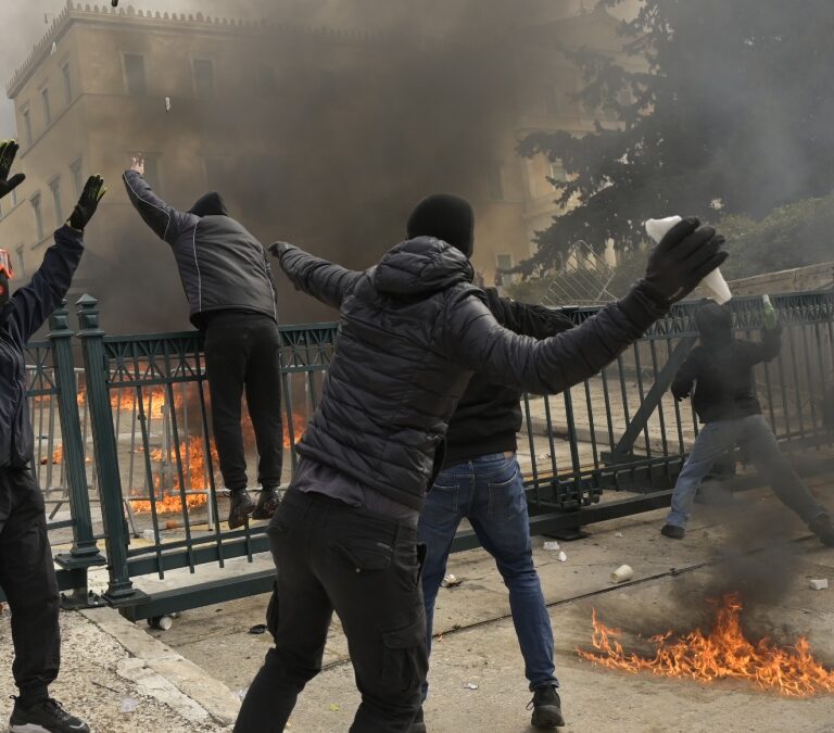 Οι αρχές αναγκάστηκαν να ανοίξουν την Βουλή για να προφυλαχθούν οι πολίτες, τη στιγμή μάλιστα που προσπαθούν να συλλάβουν τους ταραξίες, στην κάτω πλευρά της πλατείας Συντάγματος.