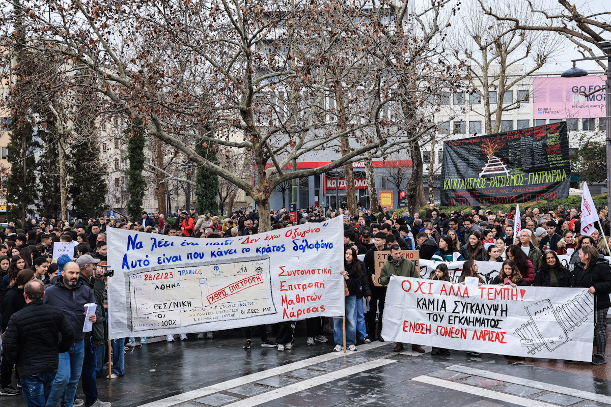 Σε εξέλιξη βρίσκεται το συλλαλητήριο στη Λάρισα δύο χρόνια από την τραγωδία στα Τέμπη, με χιλιάδες κόσμου να δίνει το «παρών» στην κεντρική πλατεία.